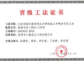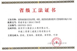 • 《大直径潜孔锤在预应力管桩施工中硬岩引孔工法》主要完成人:尚增弟、雷斌