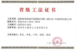 • 《拉力型抗浮锚杆施工工法》主要完成人:王贤能、周保生
