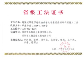 《超深超厚地下连续墙成槽大容量泥浆循环利用施工工法》主要完成人:李洪勋、雷斌