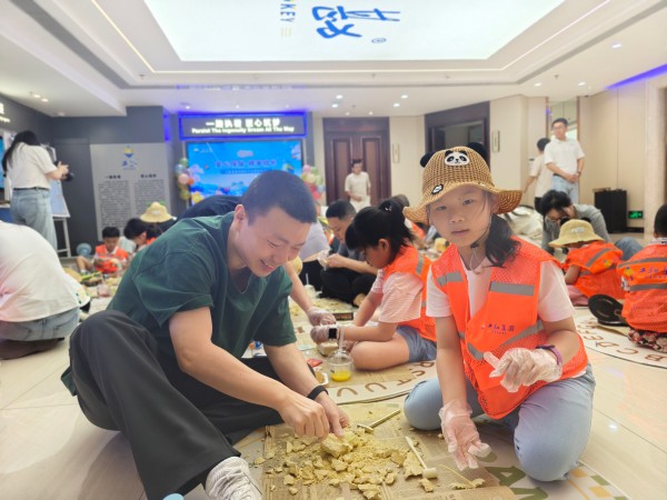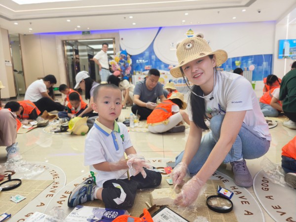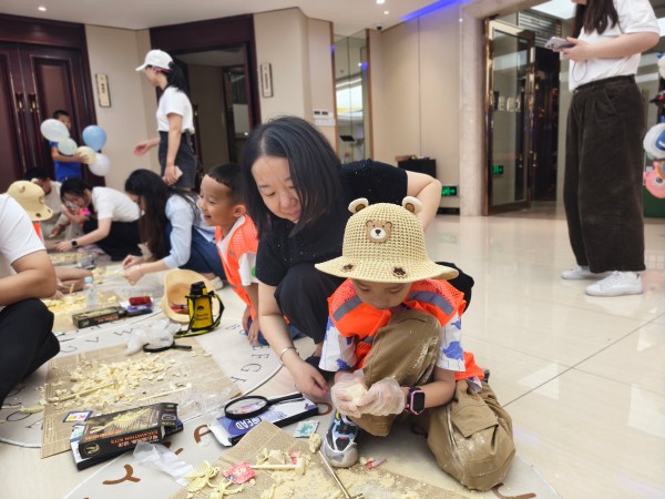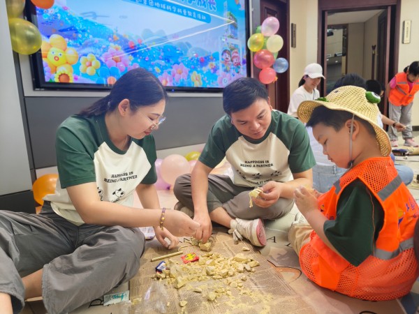 在压轴的“化石挖掘”环节中,家长与孩子协作挖掘“恐龙化石”,在欢声笑语中实践科学方法,收获合作的成就感。