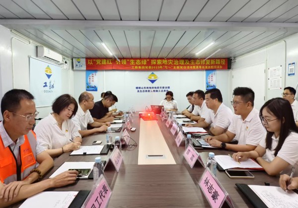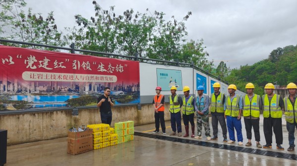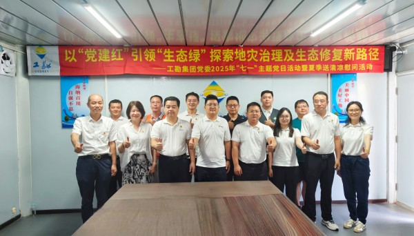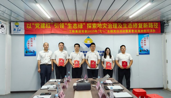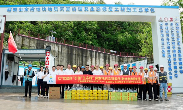 为深入学习贯彻习近平生态文明思想,将党旗插在地质灾害治理及生态修复项目一线,在建党104周年之际,工勘集团党委联合集团工会,在塘朗山东南地块地质灾害治理及生态修复工程现场,开展了一场“以‘党建红’引领‘生态绿’”的七一主题党日活动暨夏季送清凉慰问活动。集团党委和工会领导、优秀党员代表及项目部同事齐聚一堂,共同探讨党建引领下的地灾治理与生态修复新路径,以实际行动践行“绿水青山就是金山银山”的发展理念。