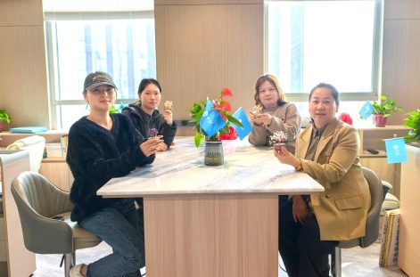 除了趣味十足的手工制作,工会还精心准备了精致茶歇和纪念照打印服务,让女职工们在创作之余,既能品尝美味、放松身心,也能定格下节日里的美好瞬间。