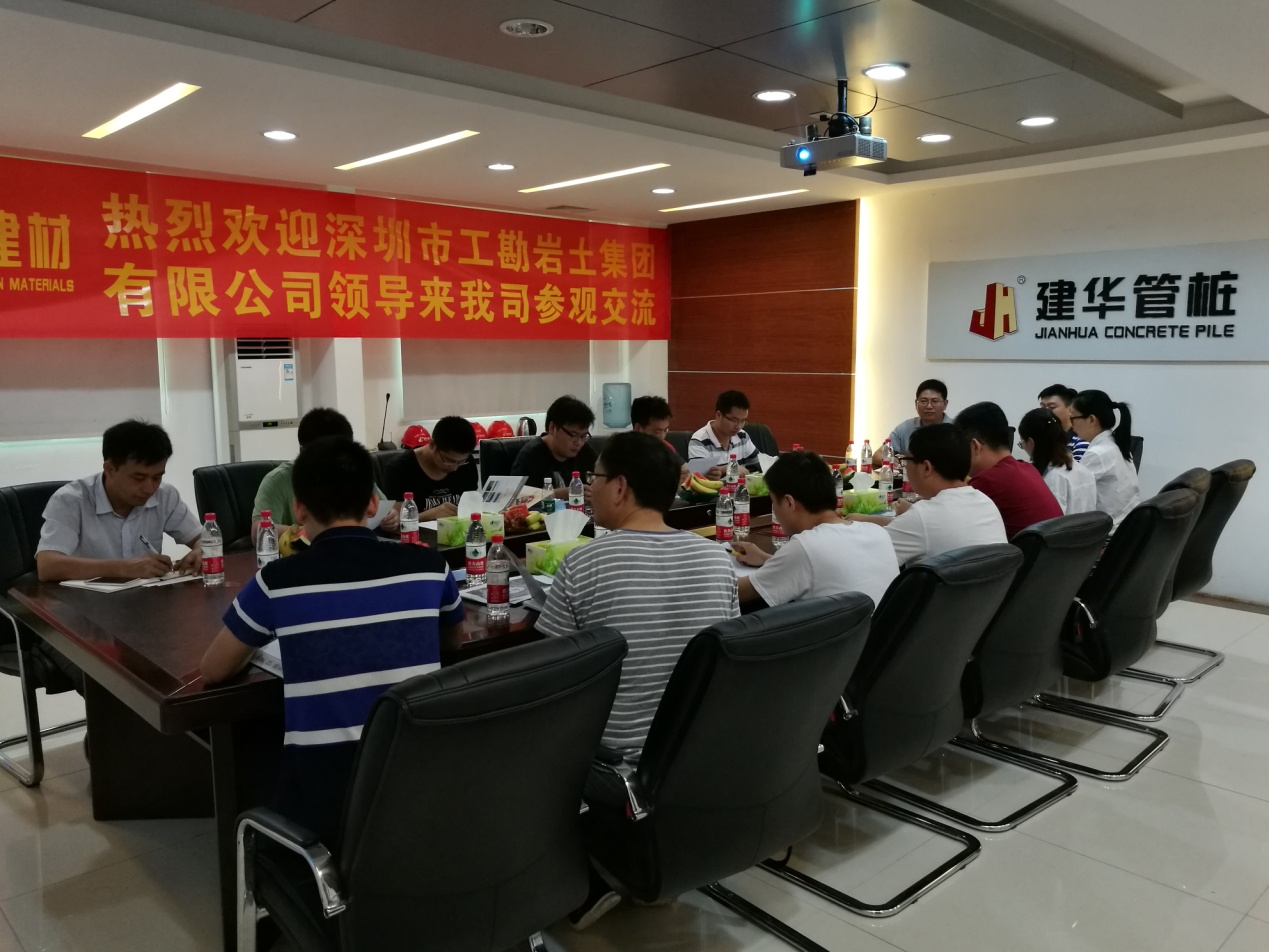 2016年6月26日周日,受建华建材(惠州)有限公司邀请,工勘集团总工程师王贤能博士携环境地质研究所、技术中心一行12名技术人员赴建华建材参观考察,深入了解管桩生产工艺及其在岩土工程中的应用。建华建材组织了专题技术交流座谈会,会后陪同我司技术人员参观了管桩生产车间。
