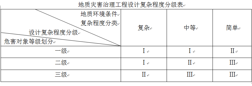地质灾害治理工程设计收费基价,与治理工程设计复杂程度分级有关。根据地质环境条件复杂程度与危害对象等级,治理工程设计复杂程度可分为三级。