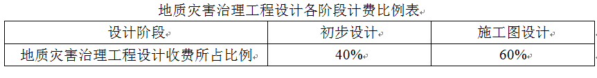 (四)地质灾害治理工程设计各阶段计费比例