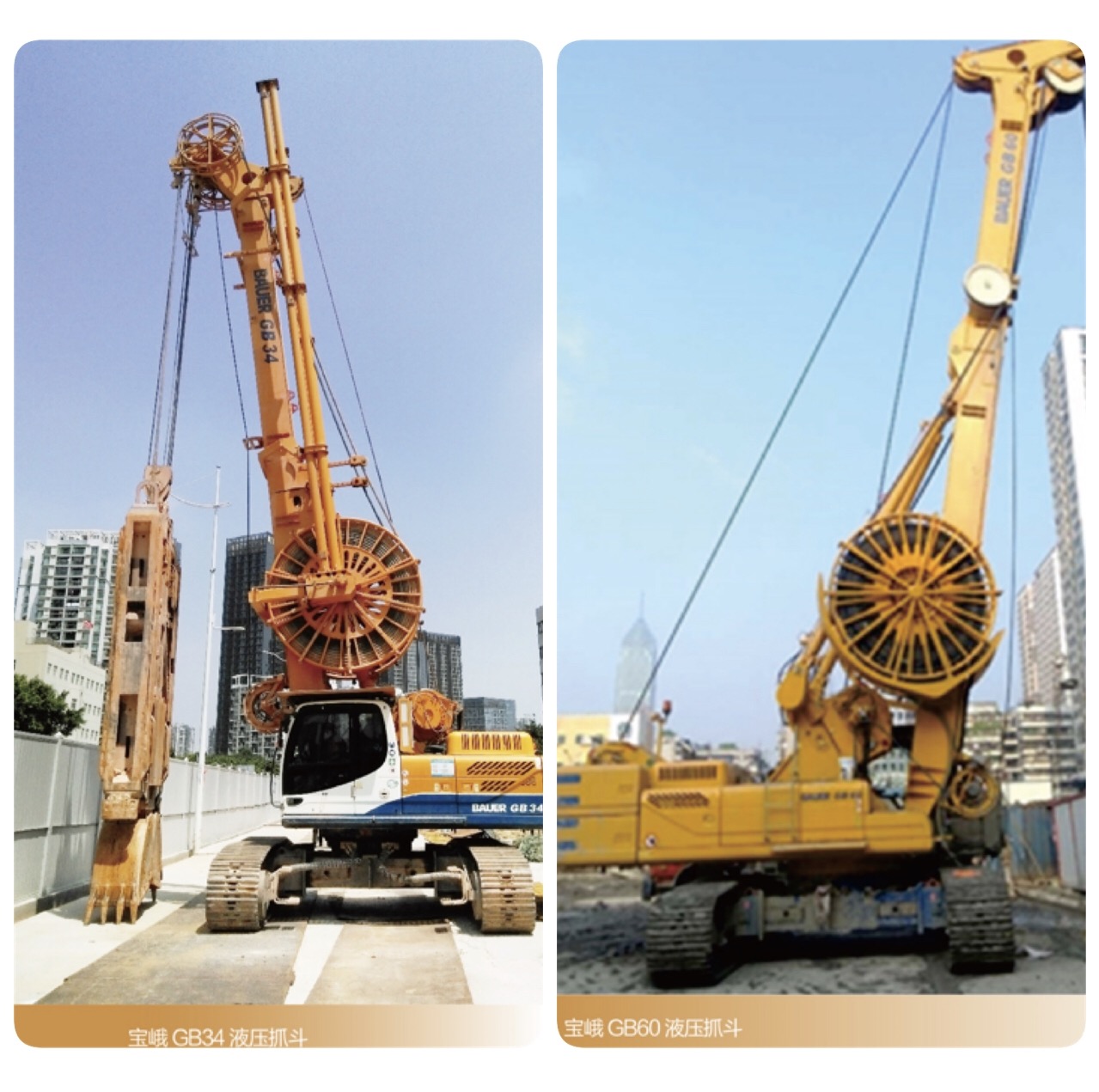 近年来,我司共斥资亿元购买了宝峨系列设备,包括宝峨BG系列旋挖桩机和GB系列液压抓斗。宝峨旋挖桩机购置有BG46、BG40、BG39、BG38、BG30、BG28、BG26、BG25等型号,该系列钻机地层适应能力强,钻岩功能相比国产旋挖钻机优势更为明显。钻机具备多功能性,从软弱的淤泥质土到微风化岩石,能够用动力头驱动器直接驱动护筒进行全护筒切接桩墙的施工。公司采购的宝峨液压抓斗包括GB60、GB46、GB34等,施工效率高、设备运行成本低、成槽垂直度好、适用地层范围广、抓斗闭合力大、抓斗闭合时间短。液压抓斗配置有先进的电脑测斜纠偏装置,可有效地保证工程质量。