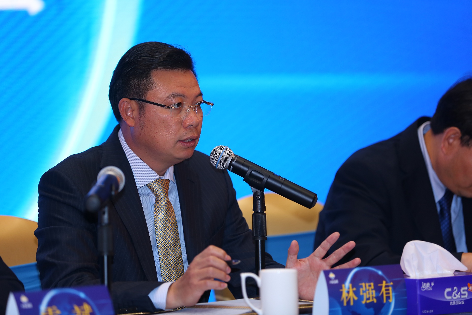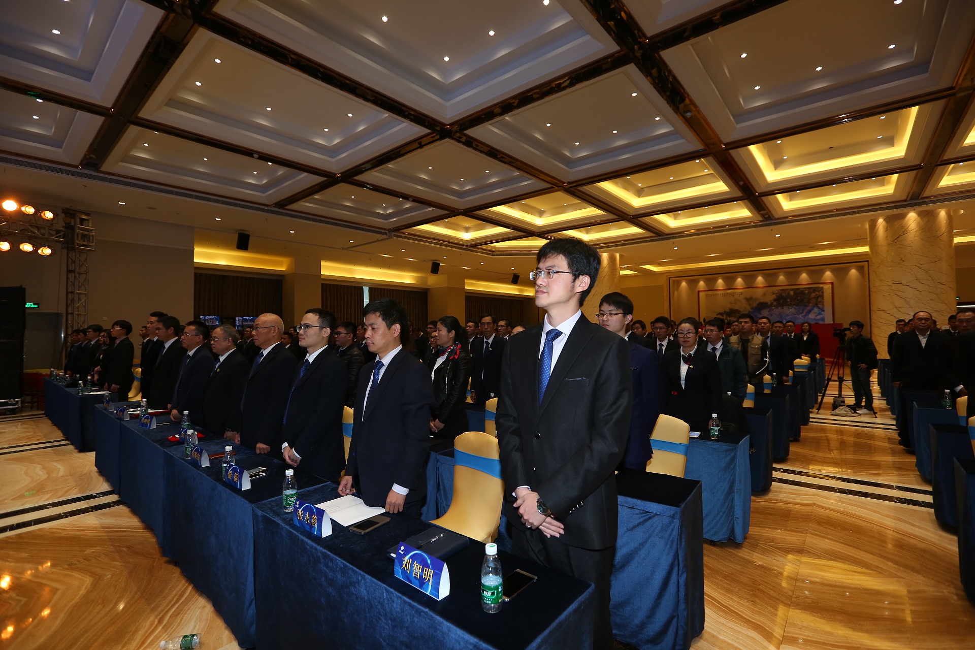 上午九点整,副总经理马君伟宣布大会开始,全体起立奏唱《国歌》。