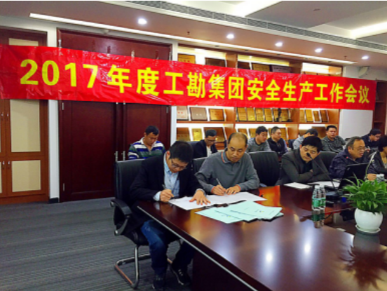 随后李总同工程管理部、勘察事业部、测绘事业部、测试中心、岩土工程设计所、环境地质研究所、基础公司等生产职能部门签订《2017年度质量安全生产责任书》,并要求各部门认真贯彻和履行各自所肩负的安全生产责任。