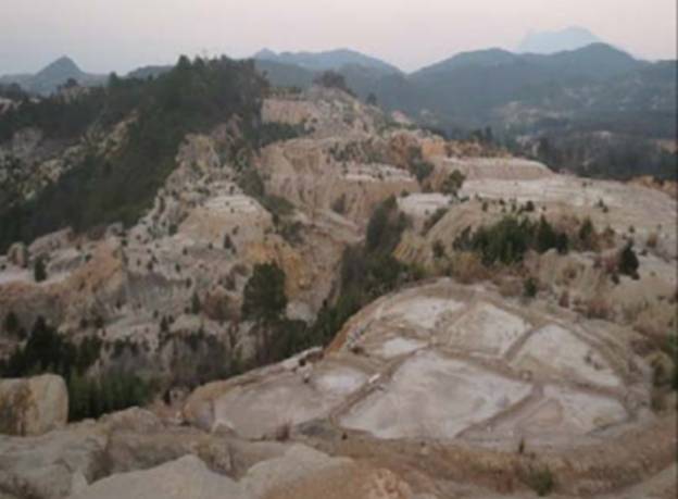 矿区属于低山丘陵区,稀土开采后,大量地表裸露,土地荒芜,沟壑纵横,极大的破坏了原来区域固有的美好生态景观。