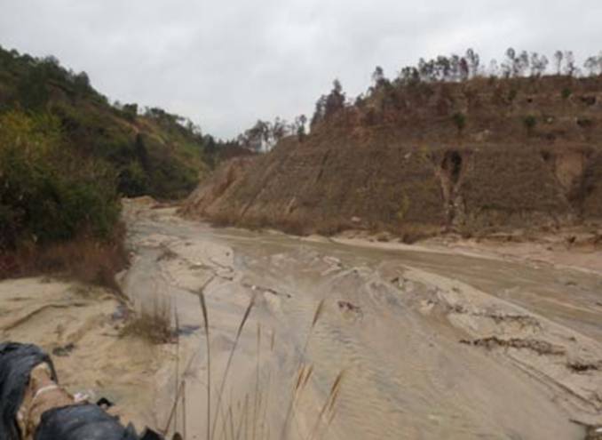 矿区水土流失严重,雨季时形成红色的泥流,淹没农田、淤塞河道。山间沟谷中因上游植被破坏等因素,使得矿区内泥流现象频频发生。区内最大的河流为寻乌河,属东江水系东江之源头,受稀土开采影响,河水污染严重。