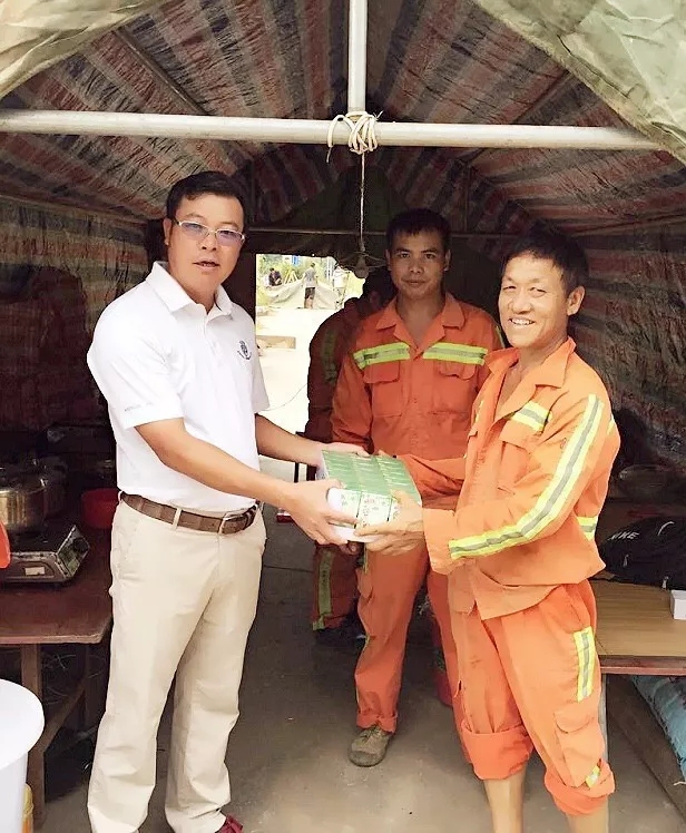 董事长为奋战在一线的钻机施工人员带来了水果、凉茶等消暑用品,向他们表达了节日的问候,并对所有施工人员的辛勤付出表示感谢!