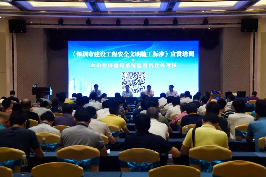 为进一步加强《标准》的宣贯,由深圳市住房和建设局主办,深圳市建筑工程质量安全监督总站承办、深圳市工勘岩土集团有限公司协办的《深圳市建设工程安全文明施工标准》宣贯培训暨全市住房建设系统监督员业务考核会议于2018年6月15日在工勘大厦成功举行。市住房和建设局高泉副局长、工程质量安全处处长郑晓生、市质监站站长郭晓宁,市市政站站长申新亚、各区局分管领导、各区局质安科科长,标准参编专家等领导参会,全市住房建设系统监督员约三百人参加了此次培训考核。