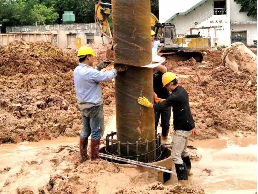 该工法通过采用长螺旋跟管钻进完成深厚软弱地层的护筒埋设和成孔,再使用旋挖钻机在护筒中钻进至设计孔深,充分发挥了旋挖钻机钻进效率高、垂直度控制好的特性,提高施工工效和钻孔质量,并在桩身混凝土浇筑完成后由长螺旋钻机一次性起拔护筒完成施工,可有效解决软弱地层中的塌孔、缩径等问题,达到加快施工进度、保证成桩质量、降低综合成本的效果。