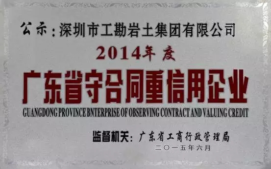 日前,经广东省工商行政管理局评审考核,我司被授予2014年度“广东省守合同重信用企业”称号,这是我司2012-2014连续三年获得此项荣誉。
