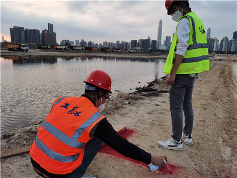 2月底,在香港抗疫形势最为严峻的时刻,测量团队第一批赶赴现场。当时的施工场地还是一片杂草丛生的荒滩,野猪成群,且时有蟒蛇、鳄鱼出没,野外作业环境异常恶劣、凶险。且当时场地尚未搭设临建,测量人员的住宿被统一安排在市区酒店,即使冒着被疫情传染的高风险,他们依然选择逆行而上。