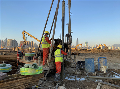 在中建科工的统筹领导下,工勘岩土集团火速驰援中央援港应急医院建设,负责项目勘察、控制测量、地形图测绘、地下管线探测、航测三维建模、软基处理设计及基坑支护设计等工作。