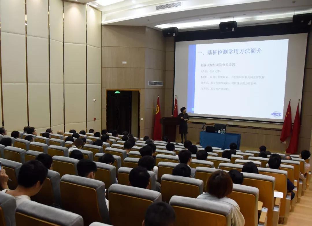 讲座上,蔡总主要围绕基桩检测常用方法介绍、检测中的误差来源、检测过程中几个重要控制环节、基桩检测自动控制及监控、基桩检测新技术及发展趋势五个方面进行了系统、详细的说明。目前,常用的基桩检测方法包括静载法、高应变法、低应变法、超声法、钻芯法等,各个检测手段需要按照实际情况,利用各自的特点和优势,灵活运用,才能对桩基进行全面准确的评价。本次讲座持续了两个半小时,在热烈的掌声中落下帷幕。