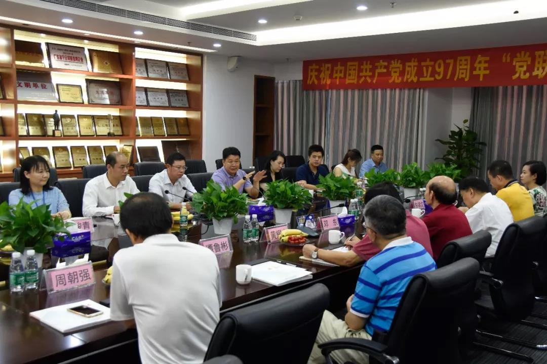 6月29日下午,深圳市潮汕商会党委与工勘集团党委联合举办的庆祝中国共产党成立97周年“党联企,讲五爱”交流座谈会在工勘大厦15楼会议室召开。深圳市潮汕商会党委书记邓东、党委副书记兼纪委书记姚欣强,党委副书记陈镇文、党委办公室主任黄耀光、党委委员谭鲁彬、纪委委员周朝强、党支部书记陈媛、党委副书记洪丽珠及商会党支部、办公室党员同志,工勘集团原党委书记林强有、党委书记雷斌、党委副书记李红波、群工委员杨峻青、纪律检查委员会委员潘启钊及企业规划部副经理周文辉、综合管理部主任罗高军等领导参与了本次交流活动。会议由工勘集团党委书记雷斌主持。